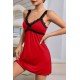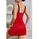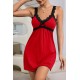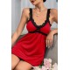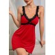 Kadın Kırmızı Dantel Asılı Fiyonk Detaylı Gecelik Takımı