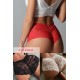 Kadın Siyah Beyaz Kırmızı 3'lü Paket Dantel Tanga Şort Külot