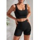 Kadın Siyah Kalın Askılı Yüksek Bel Şortlu Gecelik Takımı