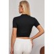 Kadın Siyah Yarım Fermuarlı ve Kısa Kollu Crop Top Bluz