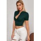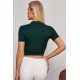 Kadın Yeşil Yarım Fermuarlı ve Kısa Kollu Crop Top Bluz