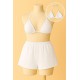 Kadın Beyaz Şortlu Belden ve Boyundan Bağlamalı Bikini Takımı