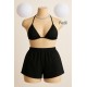 Kadın Siyah Şortlu Belden ve Boyundan Bağlamalı Bikini Takımı