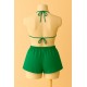 Kadın Yeşil Şortlu Belden ve Boyundan Bağlamalı Bikini Takımı