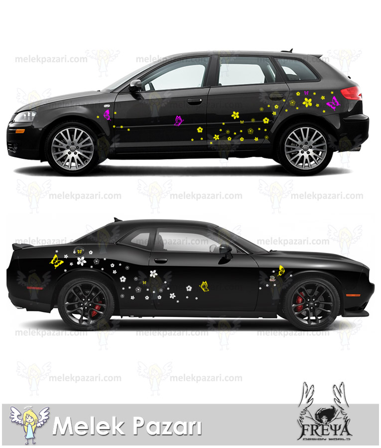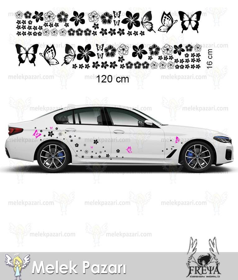Kelebek ve Çiçek Oto Sticker Sağ ve Sol Takımdır |