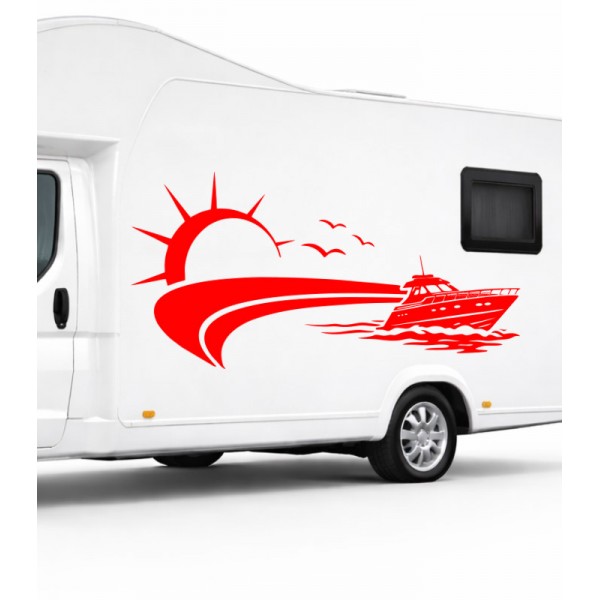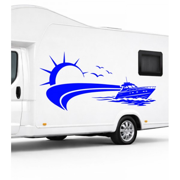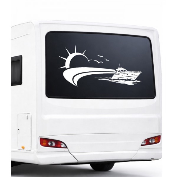 Yat ve Gün Batımı Kamp, Karavan Sticker