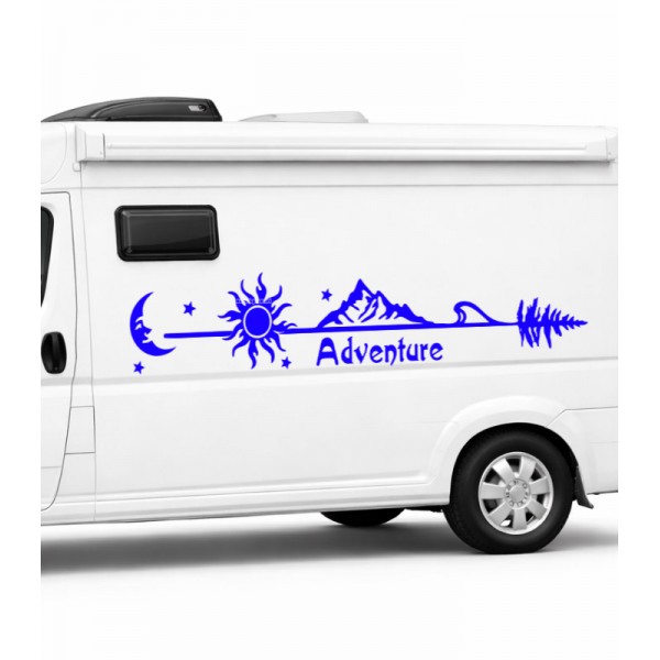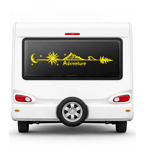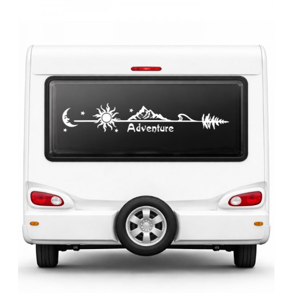 Yazı Tercihli Ay Güneş ve Dağ Manzaralı Macera Karavan Etiketi