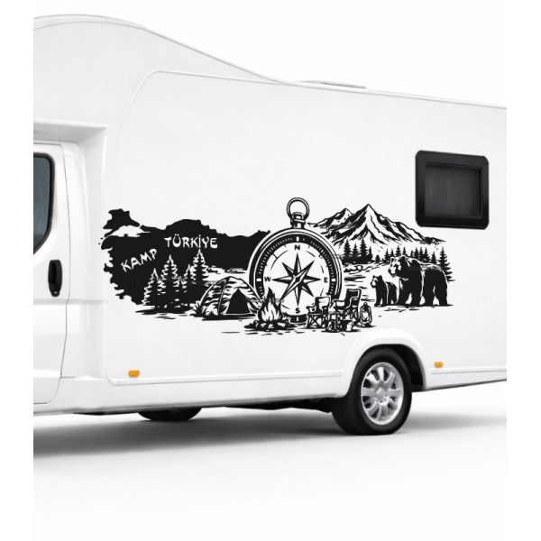 Yazı Tercihli Türkiye Pusula Kamp Sticker Kamp Zamanı yerine istediğiniz yazı yazılır. |