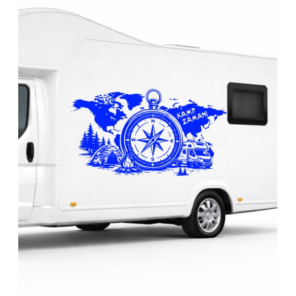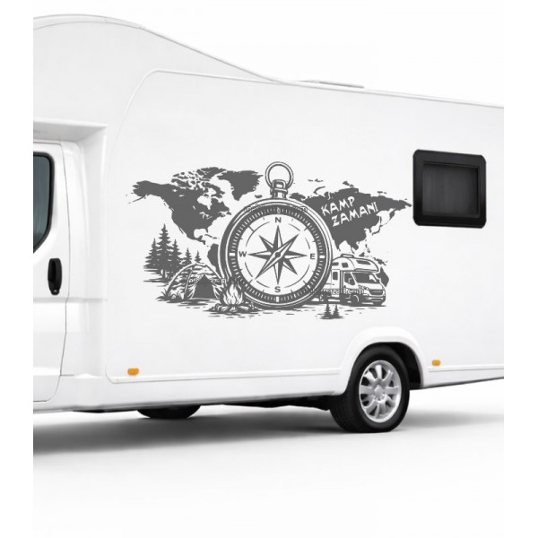 Yazı Tercihli Pusula Dünya MotoKaravan Sticker KAMP ZAMANI yerine istediğiniz yazı yazılır. |