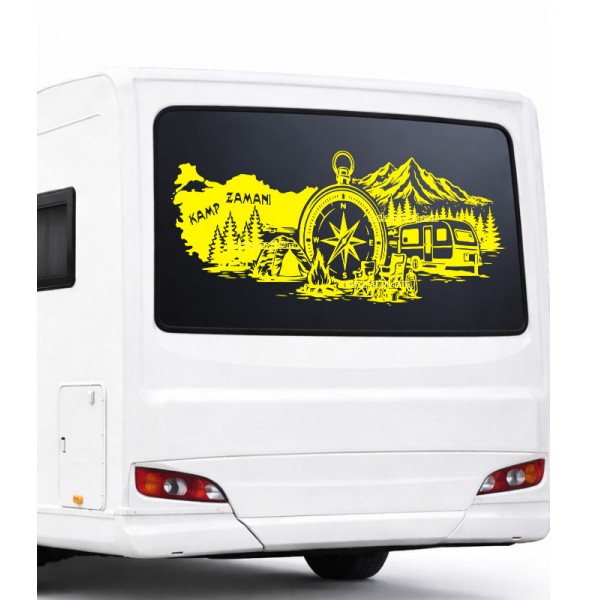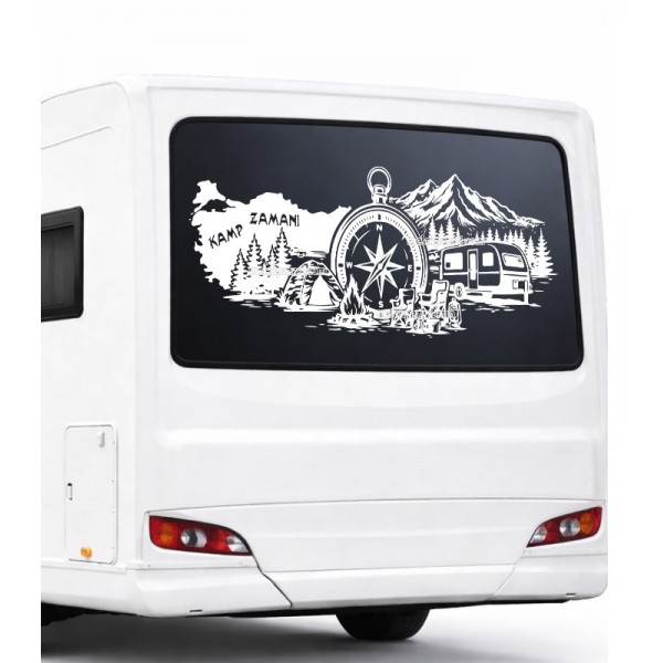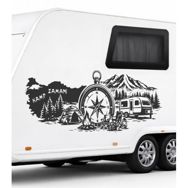 Yazı Tercihli Türkiye Pusula Çekme Karavan Sticker KAMP ZAMANI yerine istediğiniz yazı yazılır. |